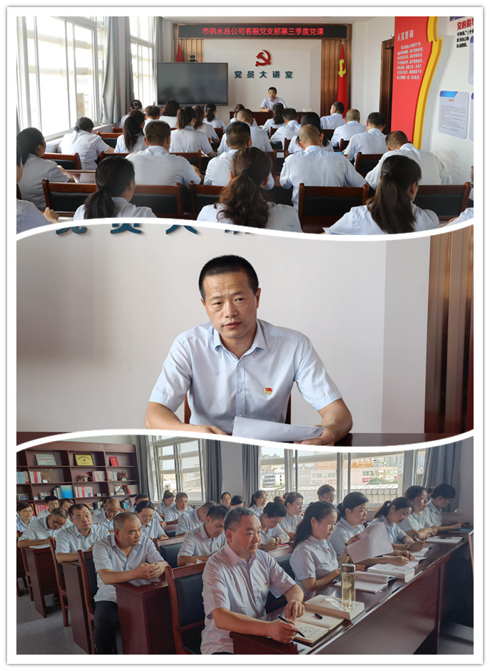 9月15日至20日,公司客服、生產、阜水各支部分別由支部書記為各支部黨員上了一堂學習《習近平談治國理政》第四卷專題黨課。黨員們紛紛表示,通過黨課的教學及個人對《習近平談治國理政》第四卷的學習,對黨和國家各項事業新的重大進展、馬克思主義中國化的最新成果又有了更深一步的了解,接下來將以更加飽滿的熱情,擔起供水工作和人民群眾獲得感、幸福感、安全感的黨員使命。